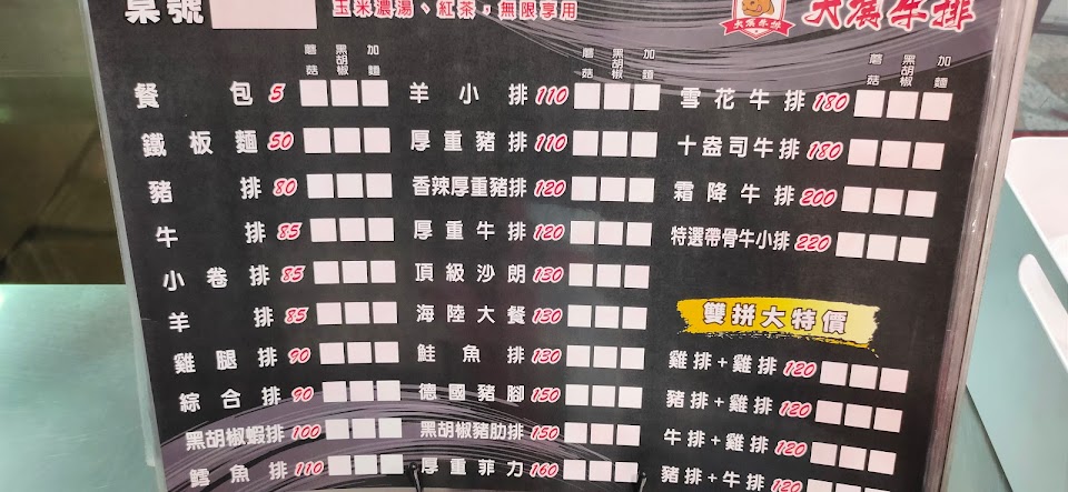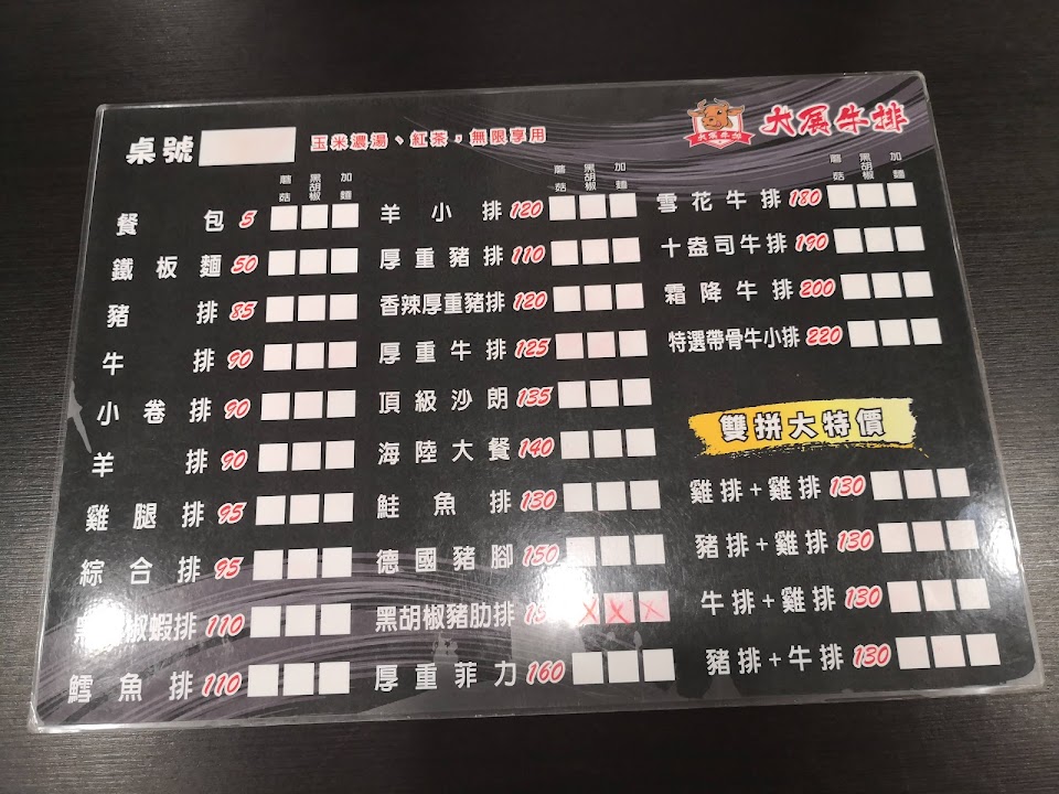 2024最新在地推薦餐廳的菜單_大展牛排的菜單、圖片