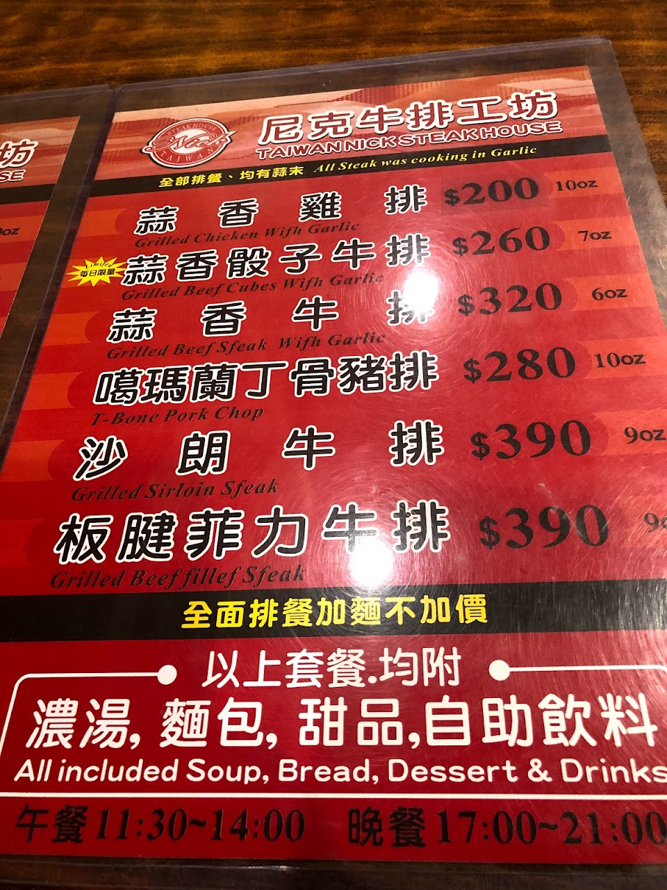 2024最新在地推薦餐廳的菜單_尼克牛排工坊的菜單、圖片