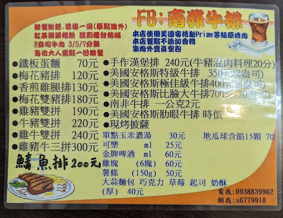 2024最新在地推薦餐廳的菜單_南非牛排的菜單、圖片