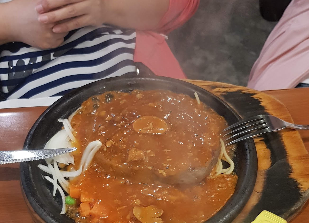 我第一次吃高級的牛排還不錯吃,我第一次吃不知道規則,不過雞塊太硬了,不過夾菜我女友被警告要戴口罩,可是有人沒戴沒被警告,不過蛤蜊有點鹹