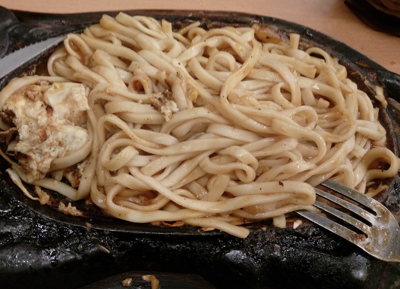 鐵板麵條與一般牛排餐廳相比較扁,比較像是一般麵店的扁寬麵,雖然麵條份量不少,但品質並不好,醬汁並不濃郁且偏稀;鐵板溫度控制隨便,烤盤上油醬不均,所以蛋絕對無法完整烤熟,如果去比較有品質的牛排館,蛋確實可以完整烤熟;肉是另外烤盤呈裝,算是唯一的優點了吧,厚豬份量有出來但相比價格並不算便宜,而承上所述鐵板的溫度控制很差,所以豬排有點過老,整體吃下來真的無法給高分。