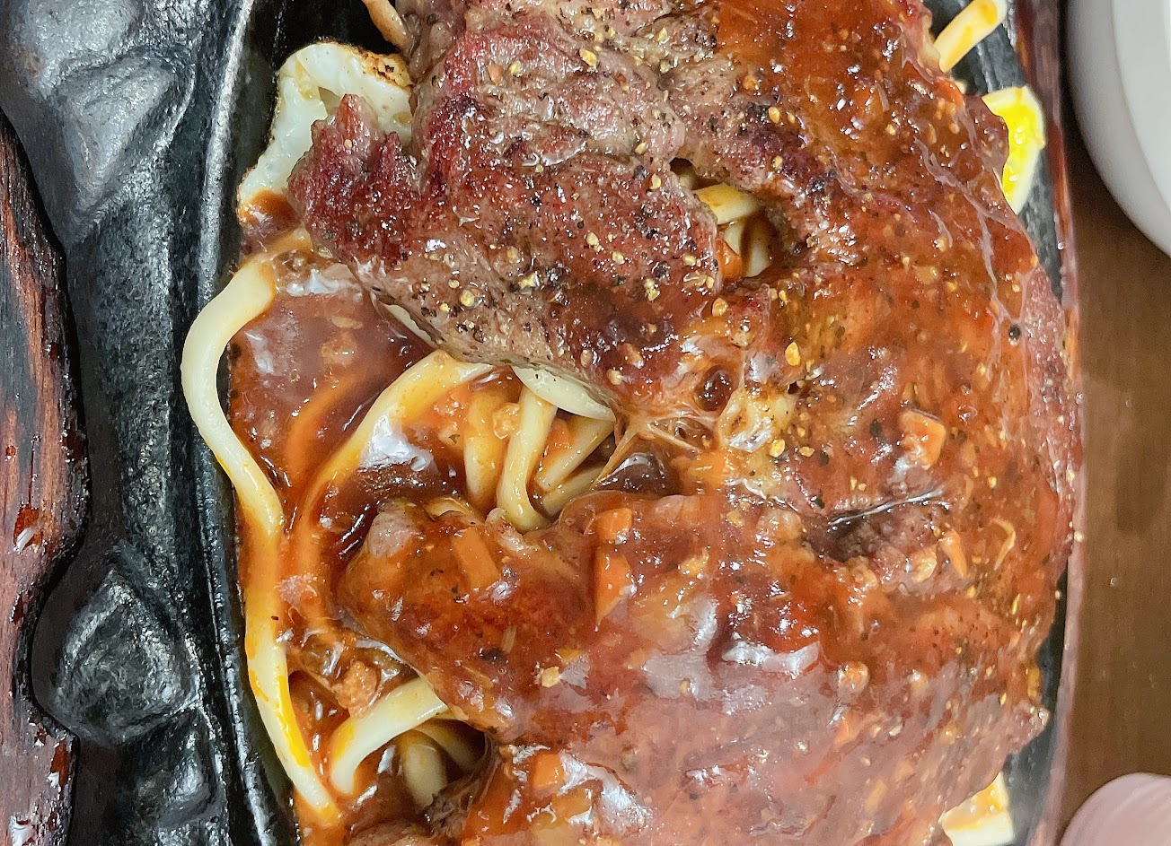 雞腿排給得很大方,鐵板麵也不錯吃! 以平價牛排,覺得CP值很ok