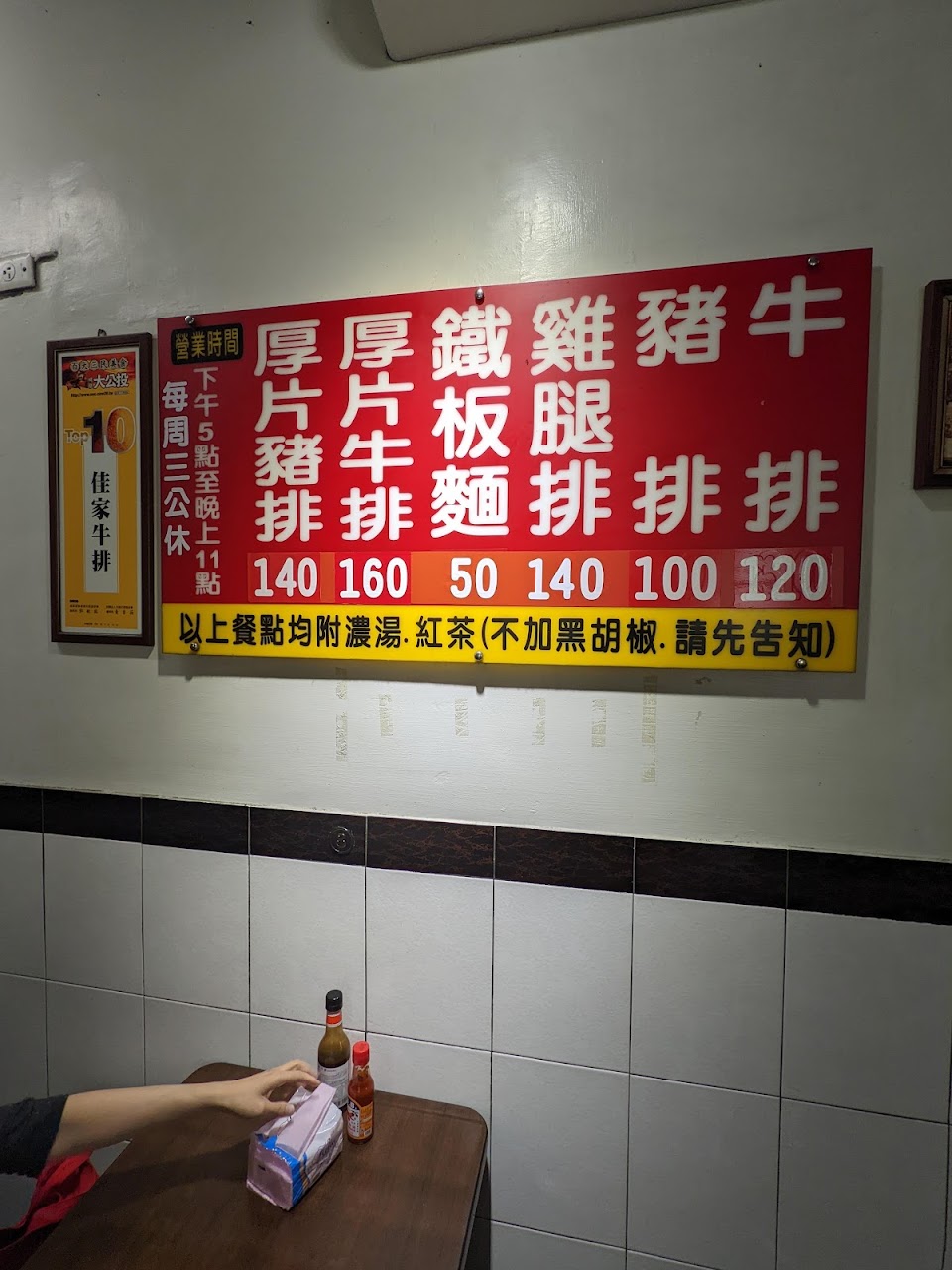 非常傳統的台式牛排店,跟一般夜市起家的牛排店感覺很相似,熟悉的味道。這一家店是一家夫妻店,3個小朋友在旁邊安靜的畫圖做功課,應該是大兒子吧還會幫忙收拾餐桌餐盤。