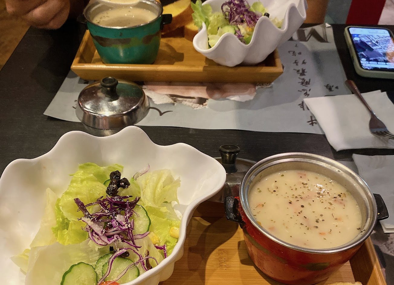 飲料我點了無糖茶,可惜完全沒有茶味非常淡。沙拉跟玉米濃湯我認為都不錯。最後的冰淇淋吃不出什麼口味?可能是黃色牛奶冰淇淋?雖然看起來是香草口味但是真的吃不出香草味。還有記得帶現金,他們只收現金。