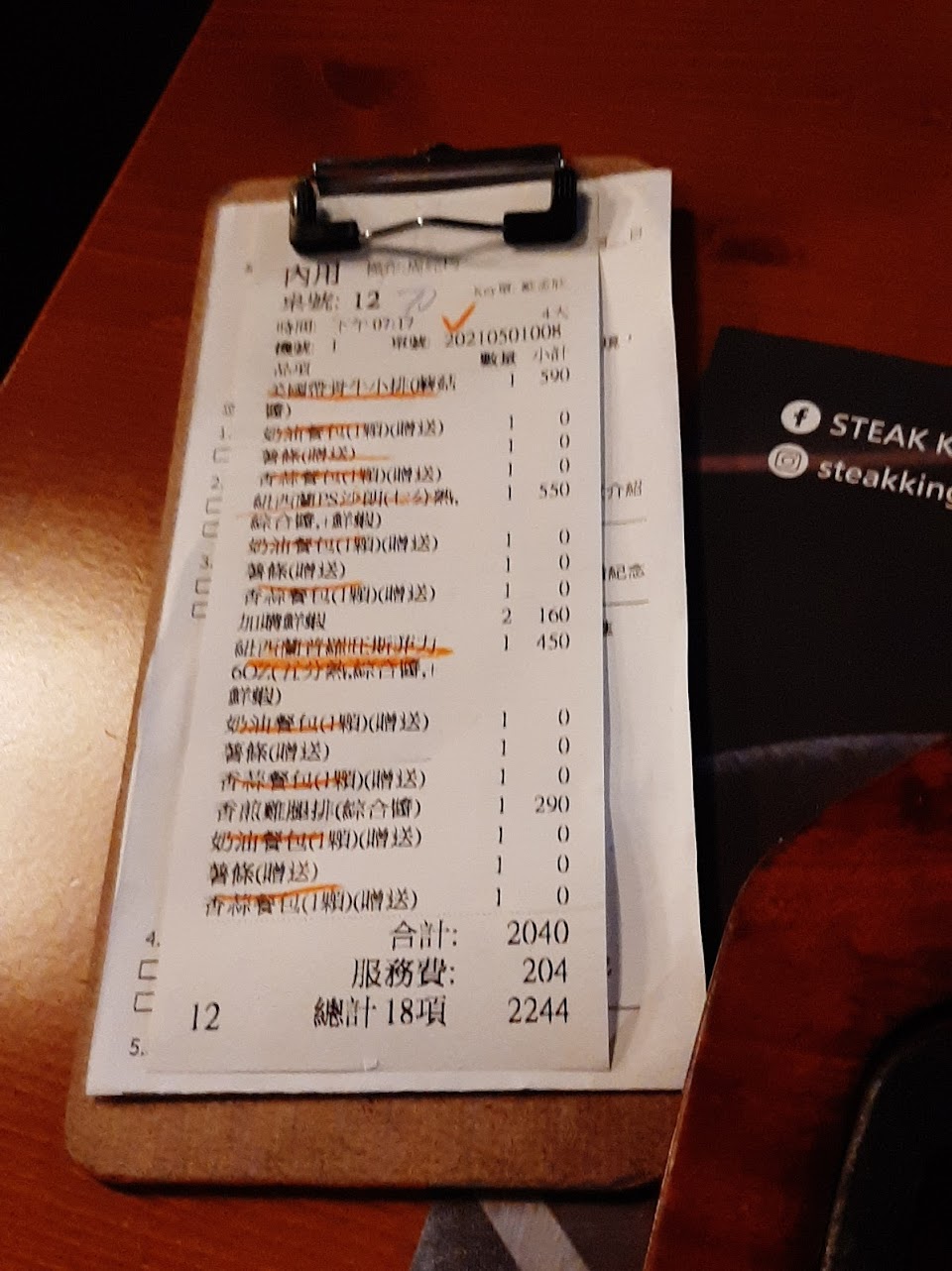 三個人去吃,點完餐幾分鐘後先上了一人的排餐,之後就一直等….等到隔壁桌比我們晚進來的都上餐了,我這桌另外兩人的都還沒來,上隔壁桌餐的服務生跟我這桌的是同一人,他都不會覺得奇怪….隔壁的都吃完了我受不了跑去問,服務生說他確認一下又是沒消息….繼續等,過約十分鐘後受不了再去問是不是忘記做餐,服務生只回說裡面在弄了,結果餐來了,650元的五分熟肋眼牛弄得像全熟牛,肉超柴,肉的紅色都沒了,整個像在吃牛肉乾,沒有巡場的,客人桌上空的坐著一直發呆頭到處看也不見有服務生注意到,這樣還收服務費!!