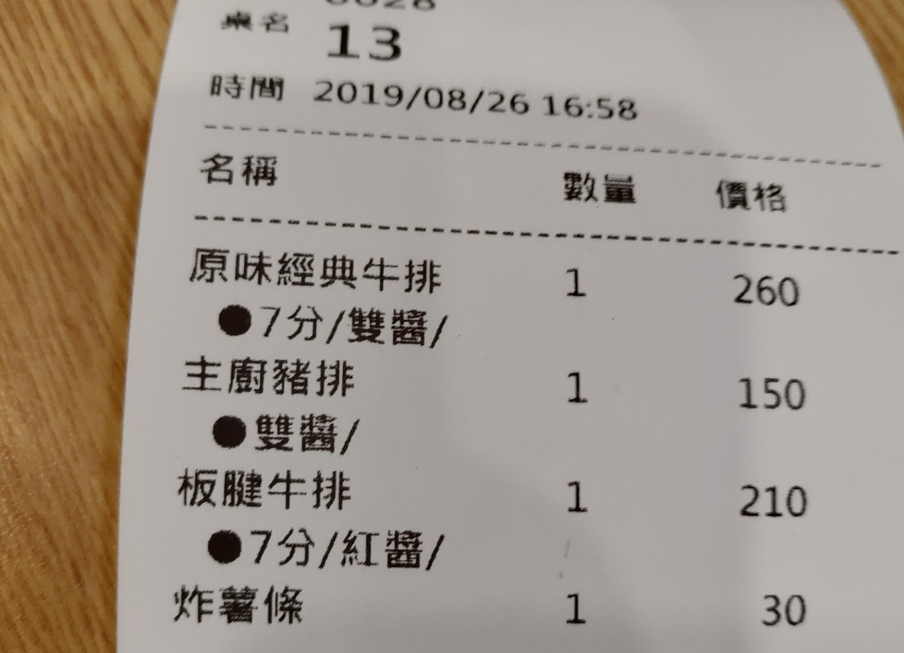 一家五口人分成二桌,我本要點原味經典牛排$260.至櫃檯點餐,櫃檯小姐皮膚白白的微豐潤的年輕人,跟我說原味經典牛排有點 “材” ,我心想有點“材”是甚麼意思?腦筋沒轉過來,無言看着櫃檯小姐,哎呦~她也不講話不解釋,是打算我自己意會嗎?幾秒鐘時間好像過很久,好像櫃檯小姐老娘就是一副妳是要點還是不點的感覺,我賭爛在心中,就說換最便宜$150牛排。地雷上桌了,都是筋切不動咬不爽,牛肉味道確實是比平價還要更普通的口感。一顆星是給餐包和上來寫評論的。