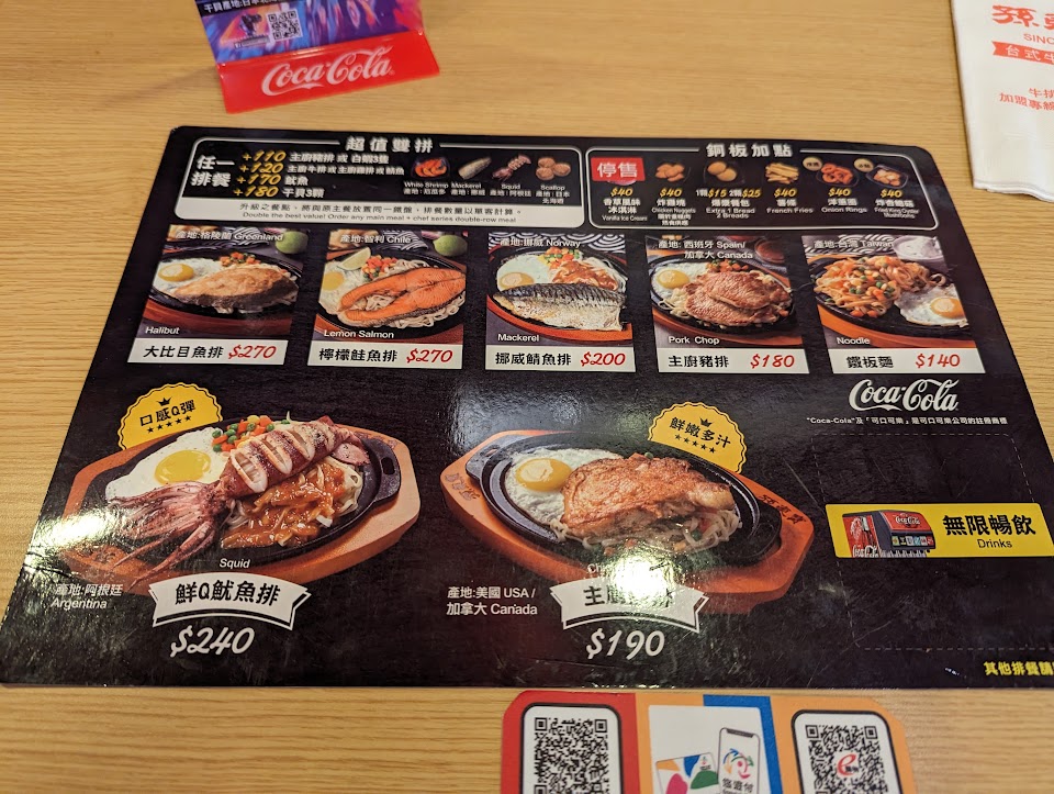 肉煎的柴了,麵說真的不好吃,類似意麵的東西來真的很怪,只有玉米濃湯還可以吧,一次性消費的店不會二訪,感覺還是20年前的口味好