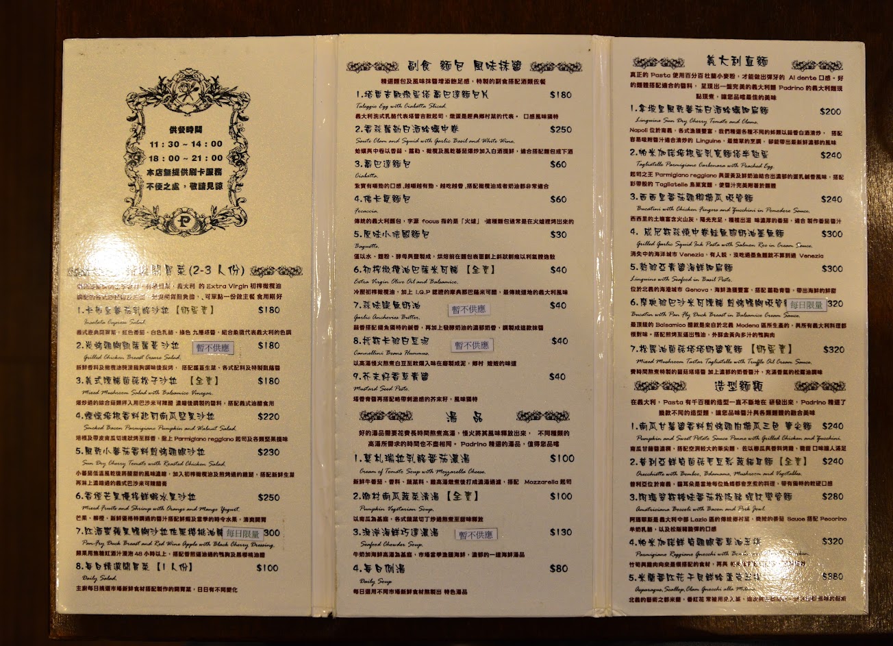 2024最新在地推薦餐廳的菜單_帕狄尼諾 Padrino 義大利廚房的菜單、圖片