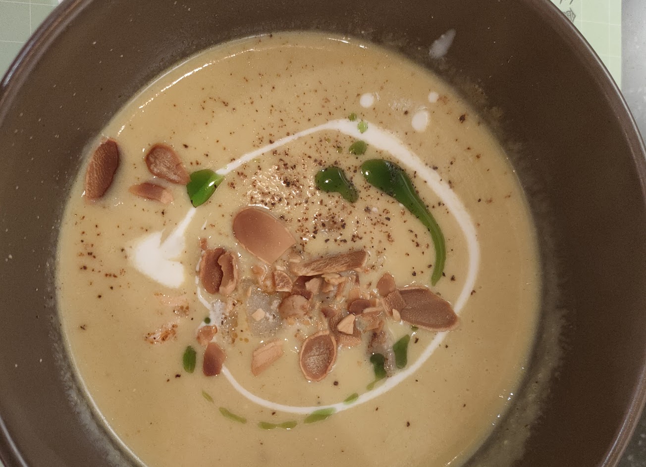 奶油南瓜蔬菜濃湯, 自製油封蒜香乳酪布里歐麵包