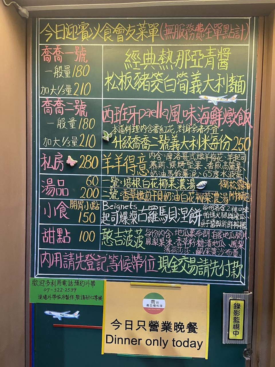 高雄第一名義式料理啦!從舊址到現在拜訪多次,真的很好吃,每過一陣子就會回喬喬吃新菜色。現在菜單改成兩週換一次並公布在臉書,菜色依然用心。