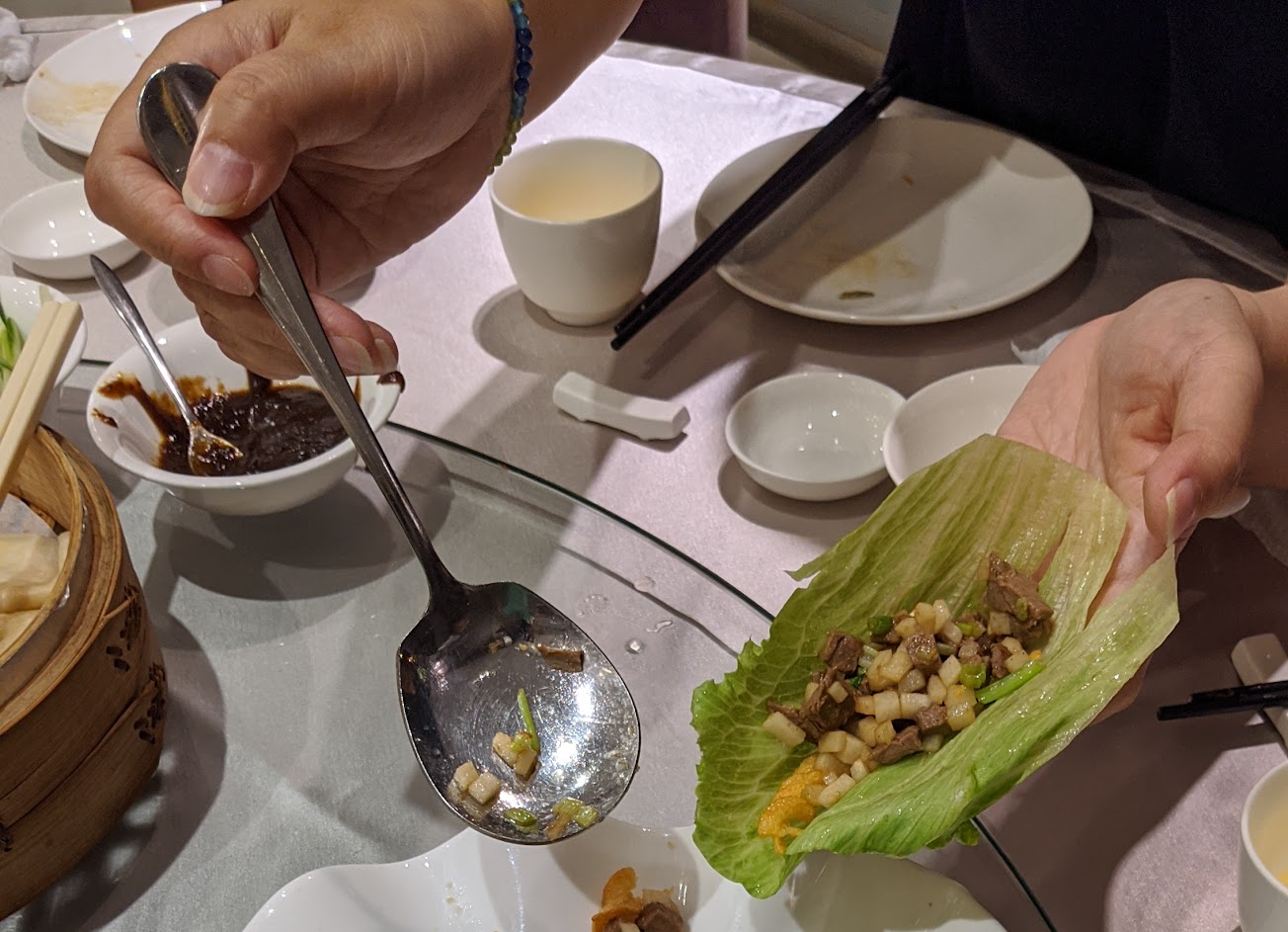 我弟媳已於4/26提前先致電預定了一些有名的菜色,結果到場時問服務生說她預定了哪些菜,服務生卻說只有烤鴨…,然後我們十位大人用餐,卻只給了一本menu ,請服務生再幫忙遞上一本也等了好久……。因當時弟媳一家還在來餐廳的路上,電話也沒接通,無法證實是否「只預定了烤鴨」,所以我媽媽點了很多菜,服務生確實是說我們只預定了烤鴨,其它都沒有,連帶也沒告知我們預定了不少菜,導致預定的菜和現場點的菜全部都上桌,最後大家真的吃的太撐很不舒服。