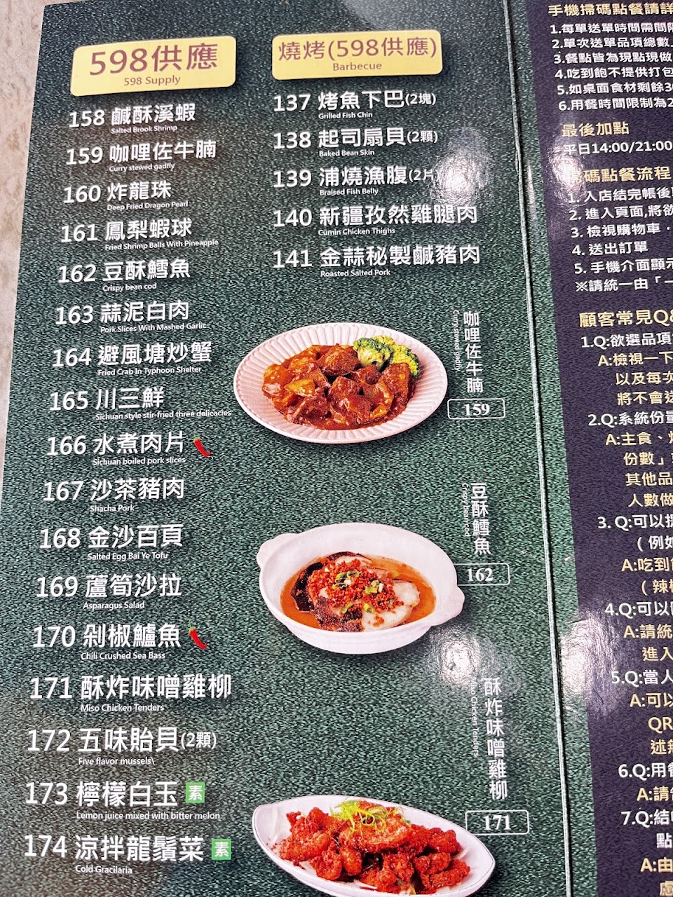 單點吃到飽,招牌東坡肉必點,肥而不膩,但是一起滷的筍乾超級鹹,最好配飯不要直接吃。其他菜色大都有水準之上的表現,除了炸物很普通,湯品略平淡,然後每道菜份量都不大所以可以放心的多方品嚐,另外有限制每次的點菜數量,且點菜須間隔二十分鐘,可是有些較費時的菜色(例如蒸魚等等)可能你第一輪點它,要到第二輪菜都上桌才出現,這樣情況在用餐後期比較麻煩,就是你點了,可是在下一輪的菜上桌之後已經要吃飽了,但是費時的菜還沒上,演變到最後可能會有整桌吃不完的菜,還好服務人員很貼心,我們感覺後續會吃不完的時候直接請服務員把未出的菜都取消避免浪費。