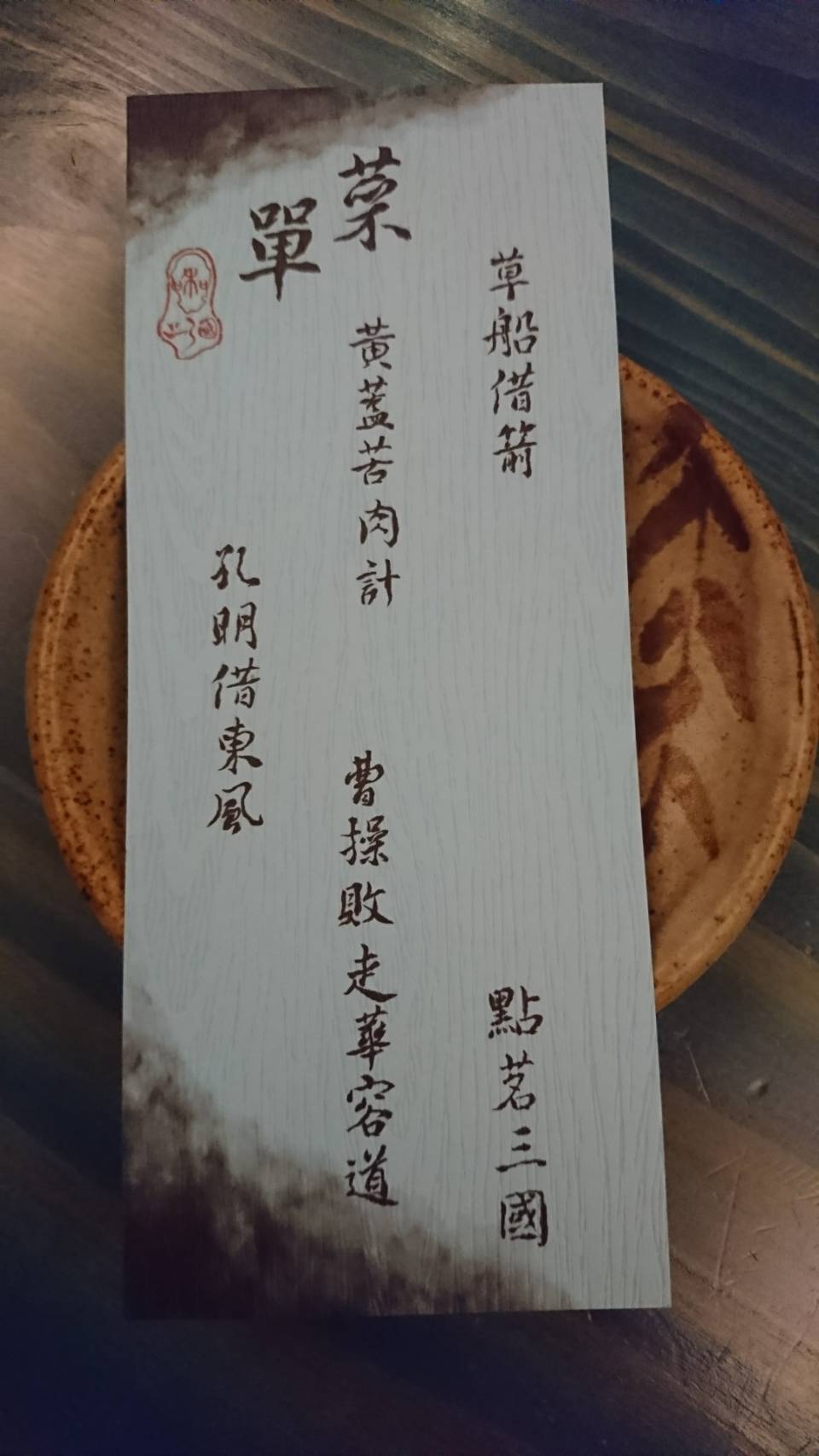 一間以三國故事為主軸的餐廳,服務人員會親自介紹餐點及故事