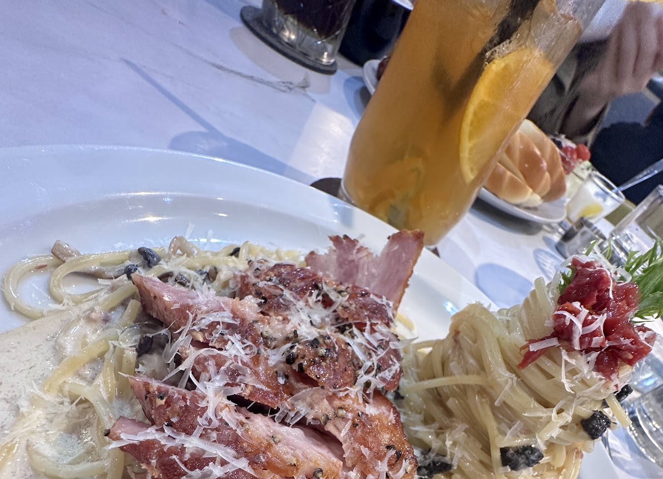 熱拿鐵, 厚 培根 白 醬 義大利 麵