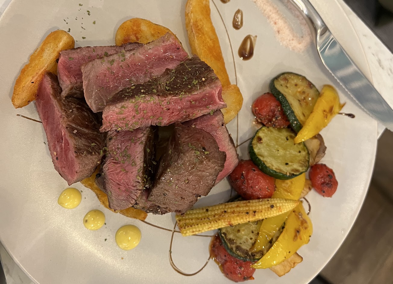 前往用餐的時候點了鴨胸與牛肉的排餐,鴨胸口味是還可以,但沒有到讓人特別驚艷的感覺;