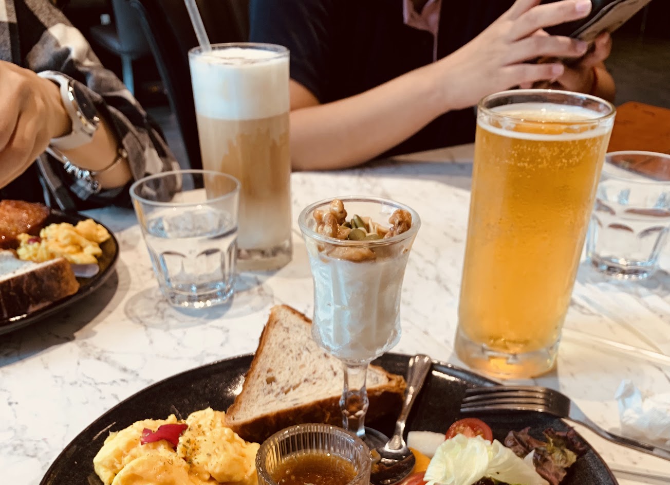 餐點算是不錯吃 我們大都點早午餐。有人點義大利麵也不錯吃。我很快吃光但甜點後來覺得好像可以不要,還有男生可能會吃不飽。