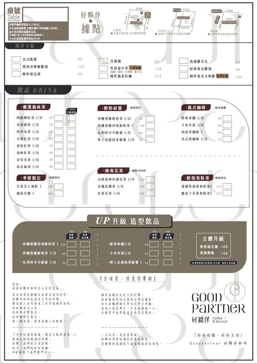 2024最新在地推薦餐廳的菜單_好夥伴咖啡 文山店的菜單、圖片
