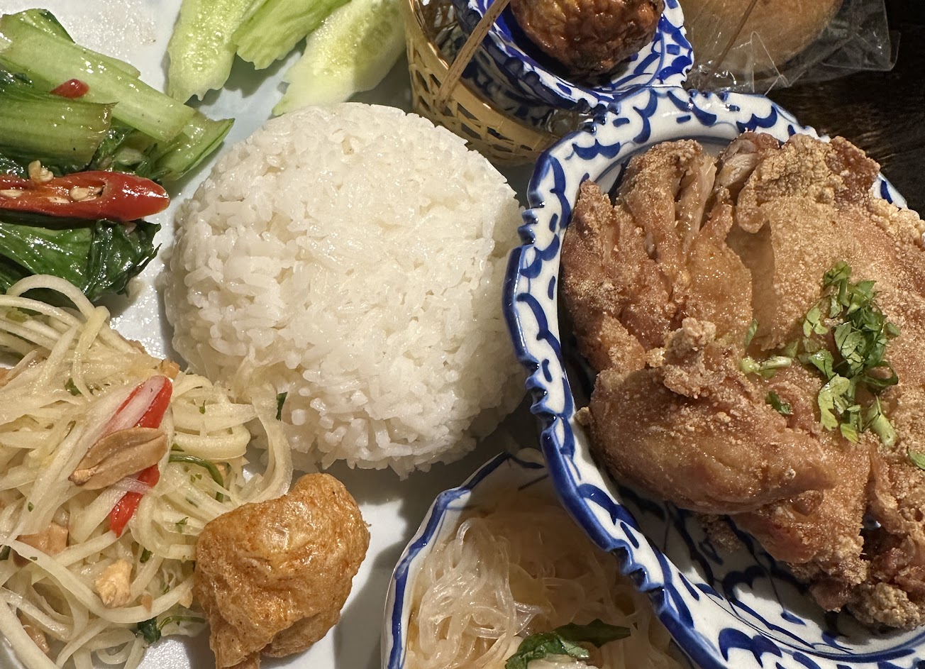 可以點個人套餐的泰式料理,店內佈置及擺盤很美,隨便拍都有美照,口味比較偏泰北清邁那一帶,可惜飯不是使用長米,口感就有落差了,麵體有點像是越南米線還算清爽。