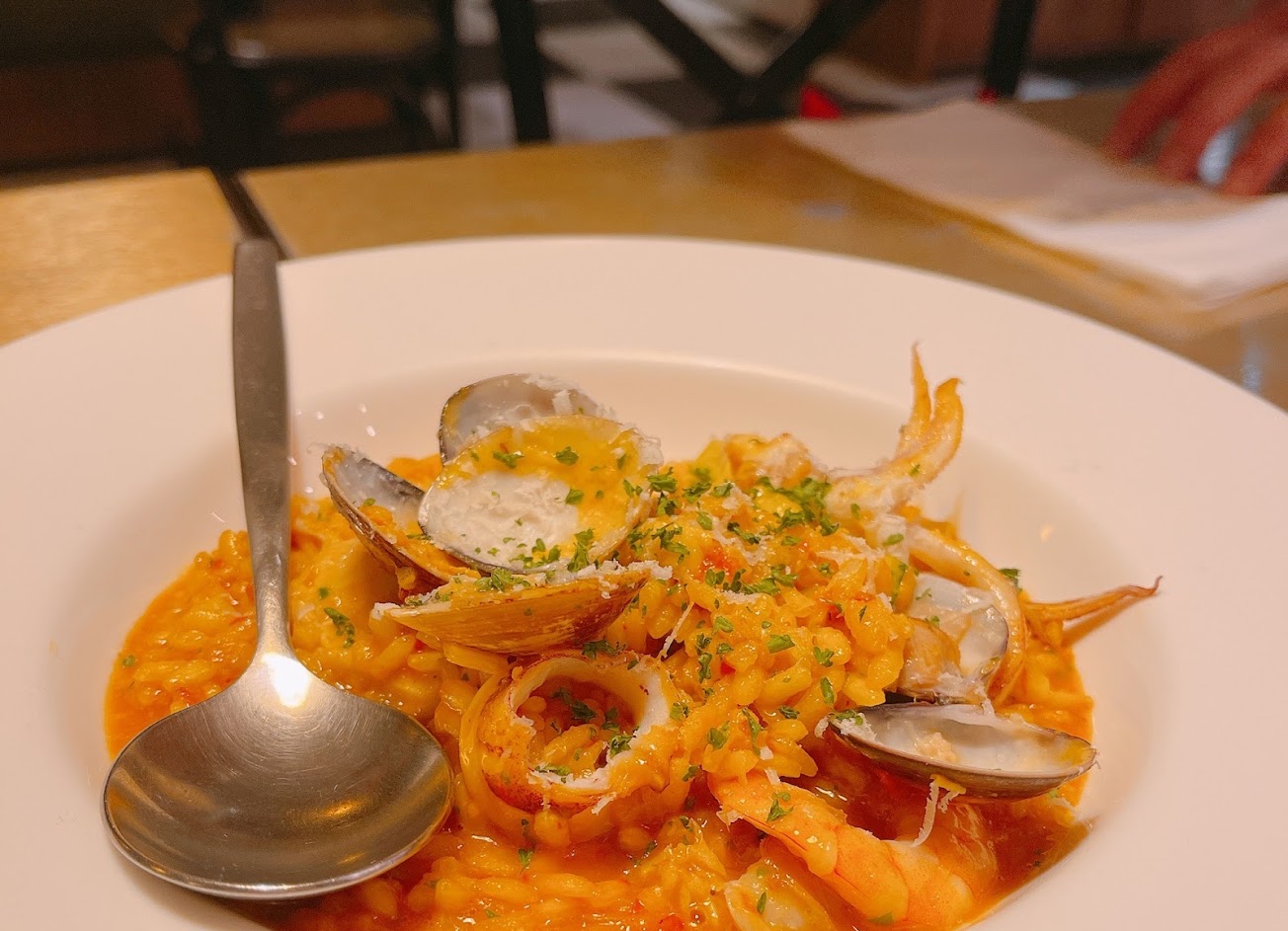 推薦海鮮類,不管是義大利麵、還是燉飯、還是沙拉,海鮮都新鮮,口感當很不錯,蝦、小卷、蛤蠣、花枝都很有嚼勁,調味上野部會掩蓋海鮮的滋味。