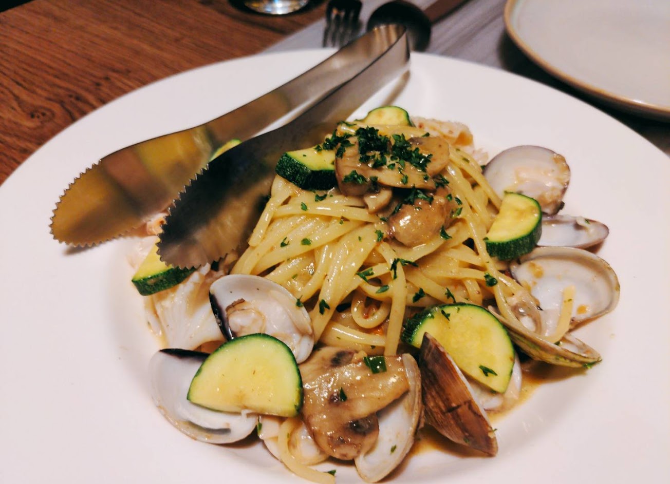 單點餐點可以2-4人一起分享,兩人點一份沙拉,一份前菜,兩份麵食就非常飽足