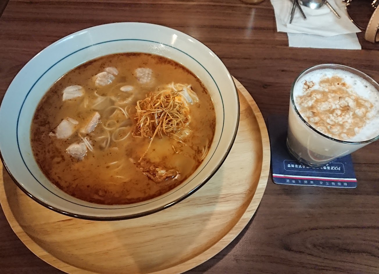 麻油雞麵跟咖啡很推薦,煎餃跟飲料表現普普,最棒的是這家店不招待6歲以下的小孩,也沒有用餐時限,服務態度非常良好!只是低消必需是一杯飲料(餐點不列入),價格+服務費中高,有預算者請慎思