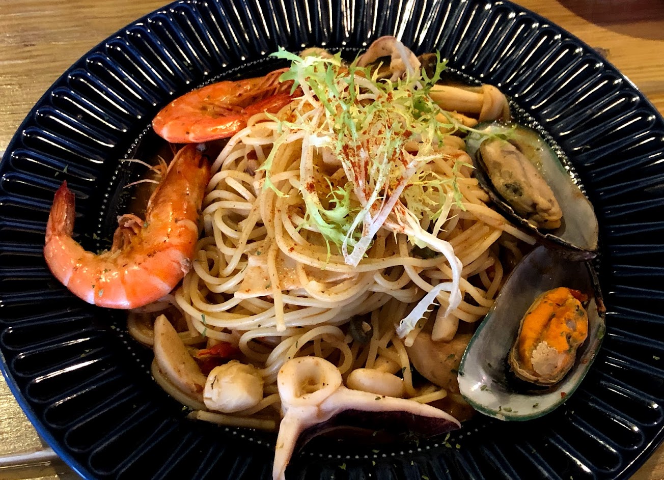 餐點好吃,份量也足夠,今天點的檸檬煙燻鮭魚麵的醬汁整個扒在麵上,每一口都很濃郁很讚!!!看到旁邊有一盤海鮮的麵味道飄過來很香也會讓人想點點看,出乎意料的物超所值!!