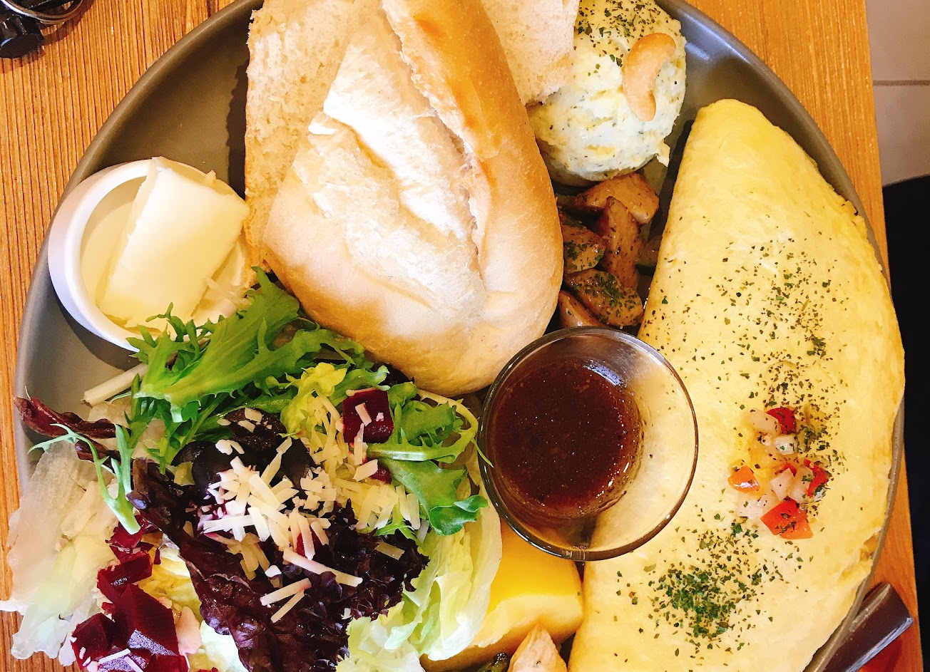 南法鄉村歐姆雷 麵包很有嚼勁,沙拉新鮮,歐姆蛋也很軟嫩,裡面的配料也調味的很好,喜歡吃早午餐的可以試試