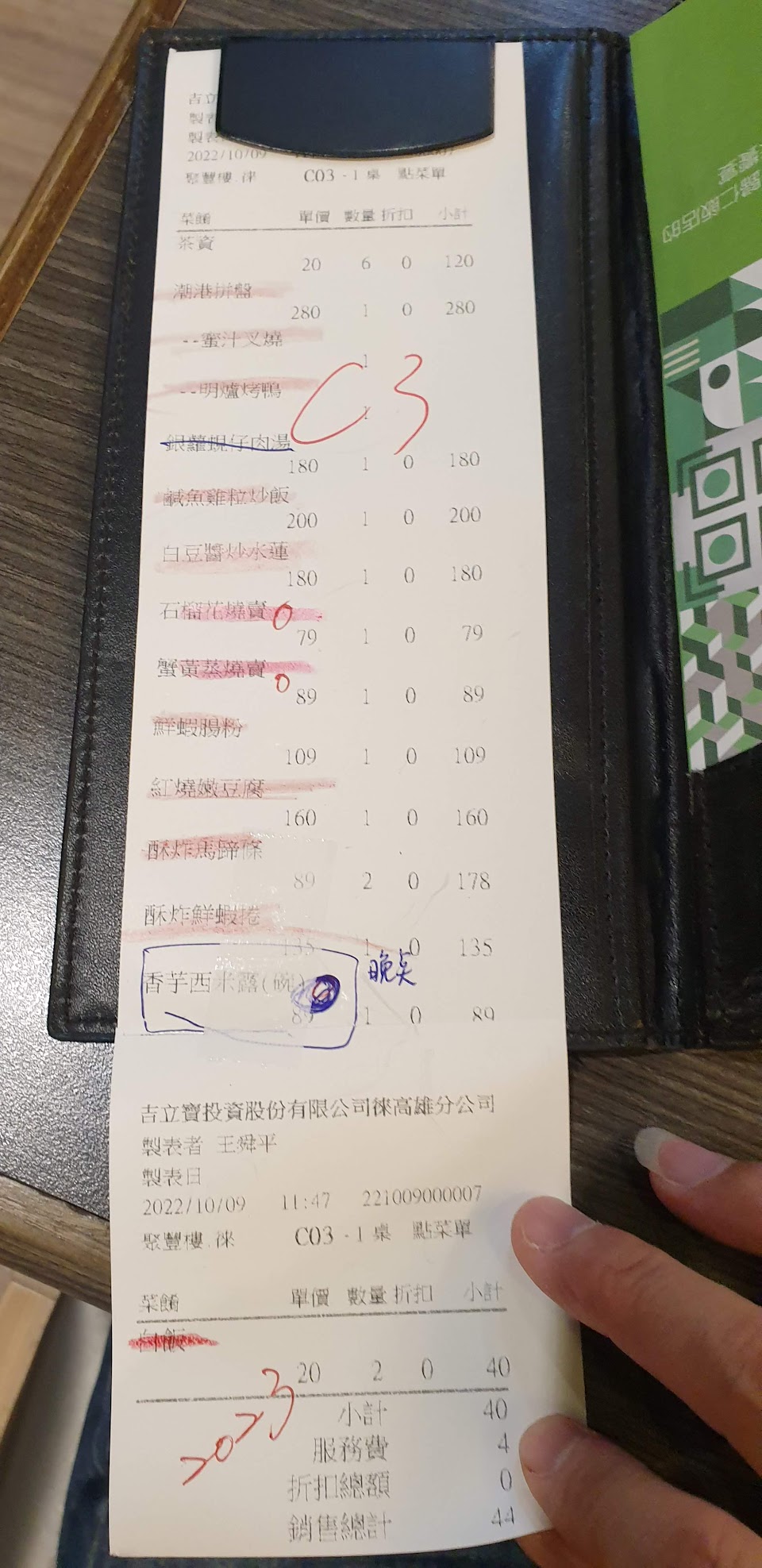 (合菜)內用6000及88節外帶7000的食材乾淨,好吃。(還送了2大瓶的美粒果果汁。