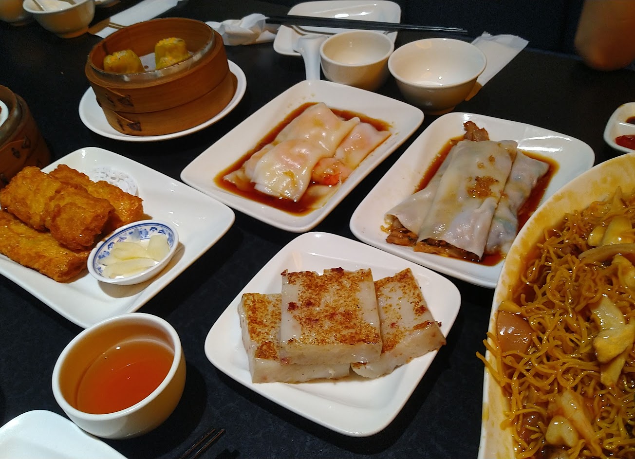 不過炒麵很炒時蔬有點太油,其他餐點蝦仁腸粉最好吃!烤雞配黃金泡菜很棒,海線雪茄味道也很不錯!