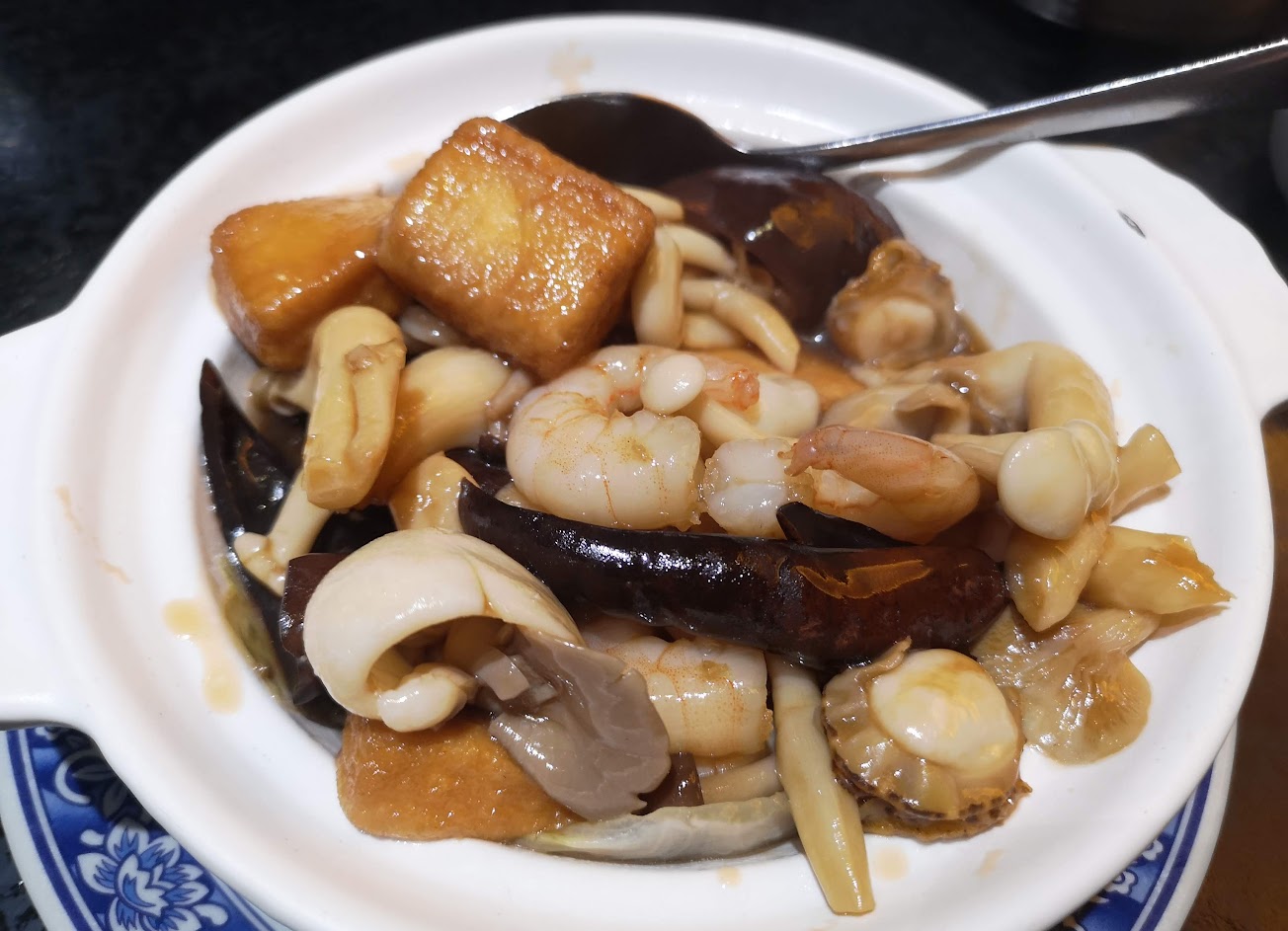 鮮蝦腸粉, 炸蘿蔔絲餅, 水煮牛肉, 泰式蝦餅, 芝麻球, 錦繡海皇豆腐煲, 芋頭西米露