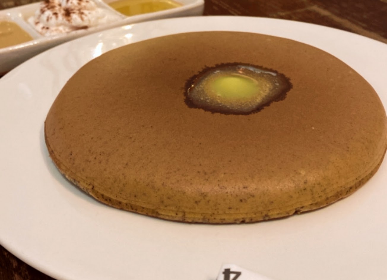 這次厚鬆餅是挑很少見的紅烏龍口味