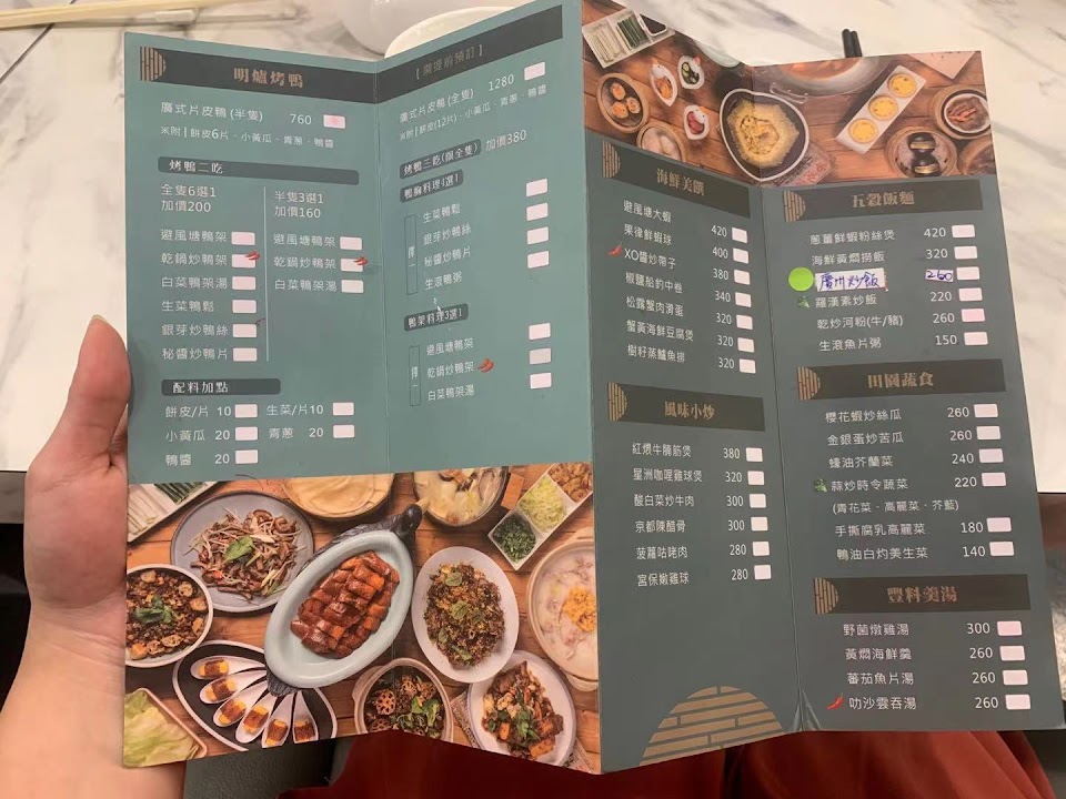 烤鴨及點心料理好吃。干貝娃娃菜卻整個沒味道,落差很大。