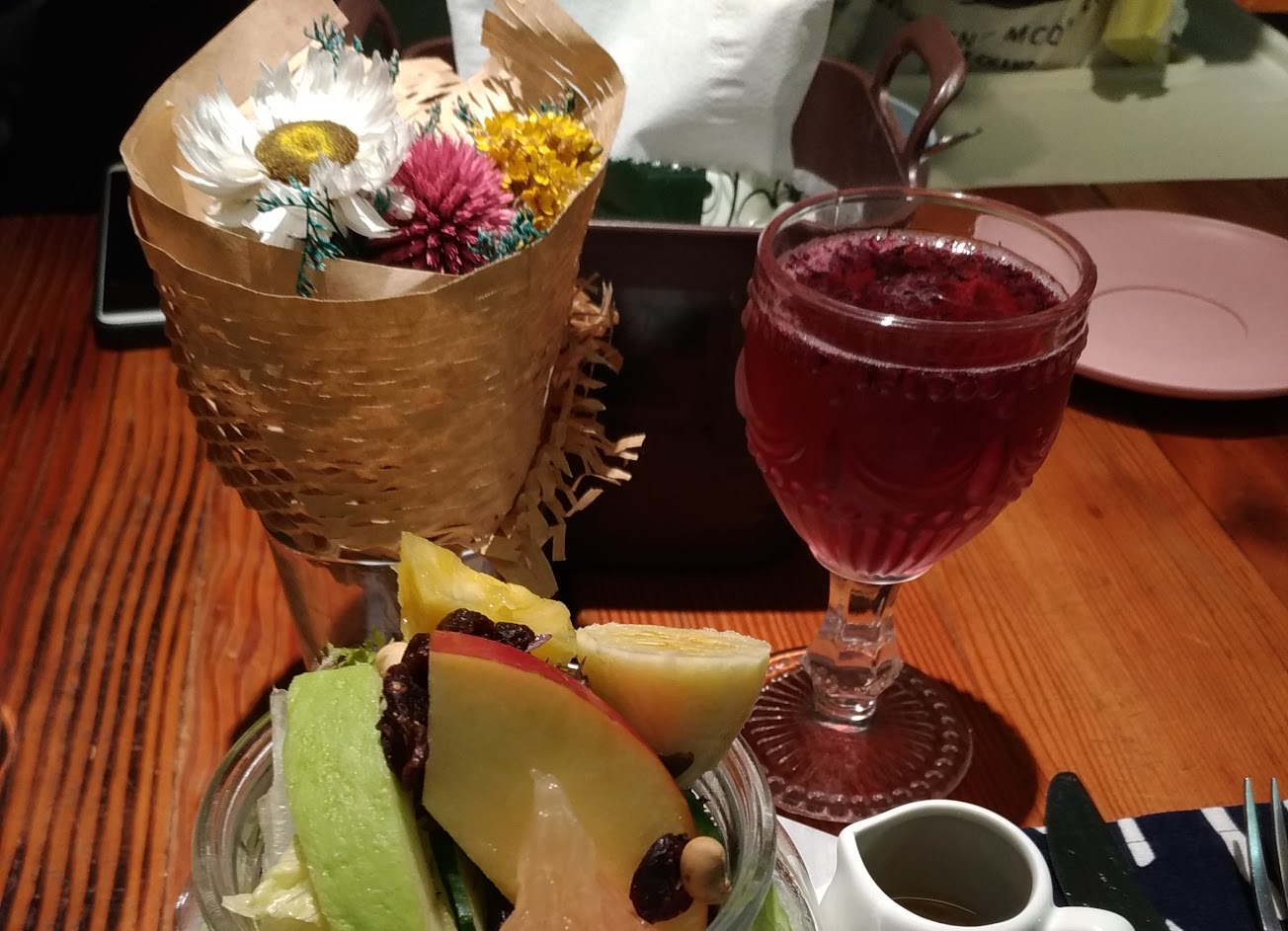 沙拉搭配自己製作的洛神花很清爽很好吃