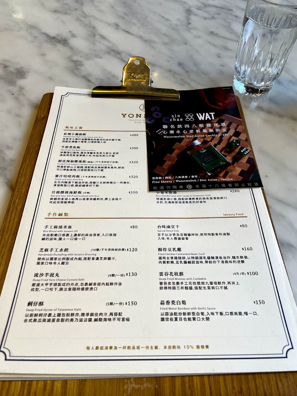 很精緻的臺菜餐酒館,上次去同行友人抱怨週末DJ太大聲,所以這次改成平日晚上去用餐,店員不但記得還招待我們小點,很貼心,而且餐點跟調酒都很不錯,原創有臺灣在地特色不像其他一般的西式餐酒館,紅白酒選項也很豐富,很適合帶外國朋友來。
