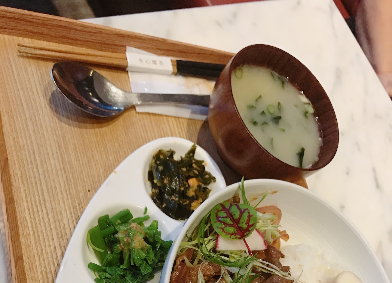 -當天座位被安排在靠近櫃檯處的兩人桌,旁邊是一盆植物,背後2個店員站在後方,不時有人流在背後走來走去,詢問是否可以更換位置,卻被店員拒絕說兩人就是只能坐這桌,我看著比我們早進來坐在隔壁四人桌的情侶,不禁開始懷疑店員跟我看到的人數是不是不同?