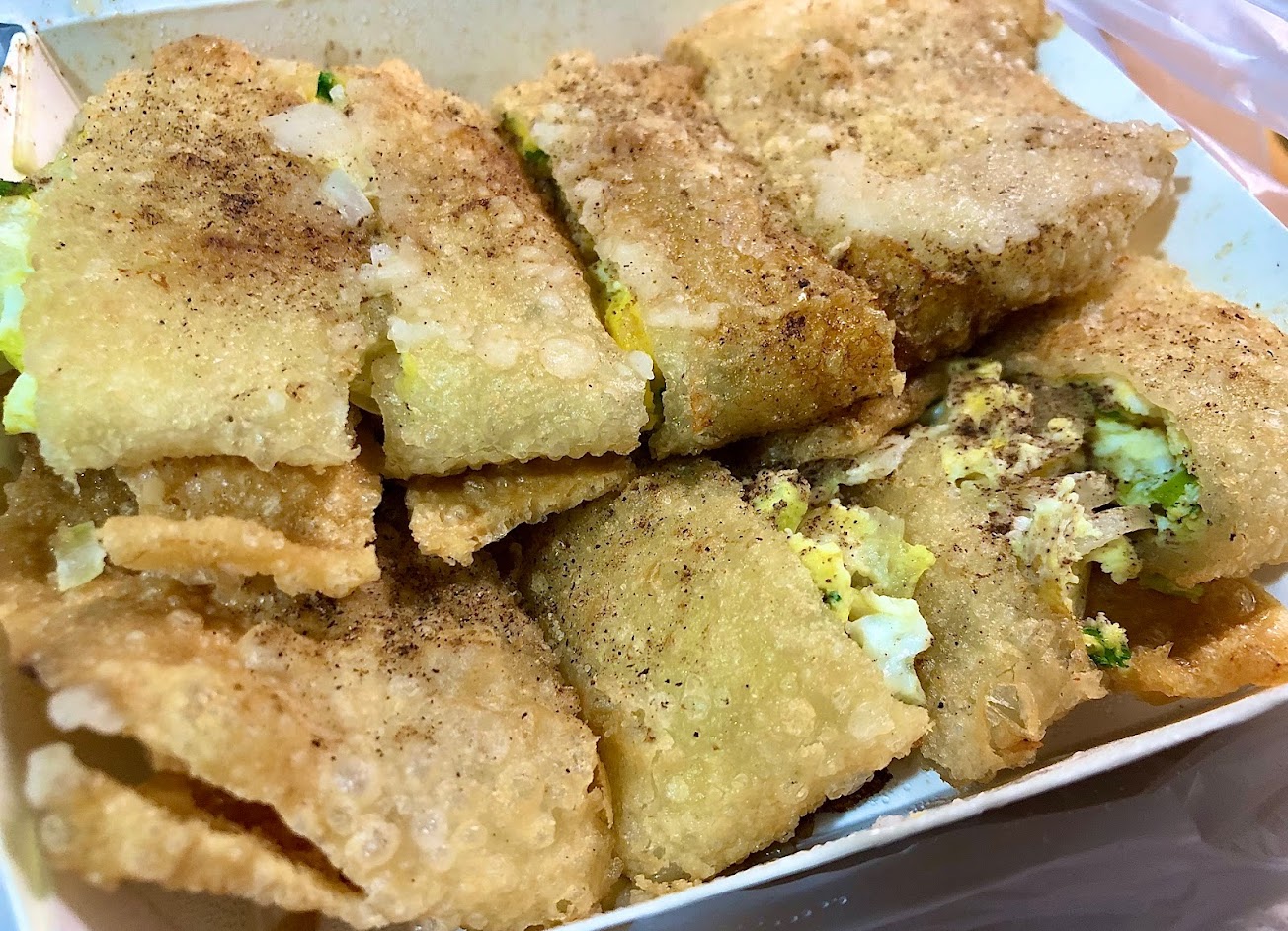 蛋餅可以選擇酥炸皮,即使冷掉也還是脆, 不過因為皮的厚度,所以有一點硬, 老人小孩請小心食用,由於客人眾多, 請耐心等候二十分鐘的時間,不要催單。