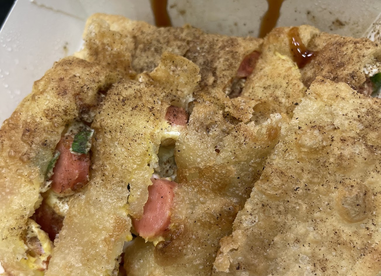 辣醬油一整個死鹹死辣,完全沒有香味 加下去簡直毀滅整個蛋餅,還因為已經很鹹完全沒辦法再加別的調味料蓋過去,真是天亡我也?♀️應該還是醬油膏或甜辣醬或是正常清醬油會比較好….