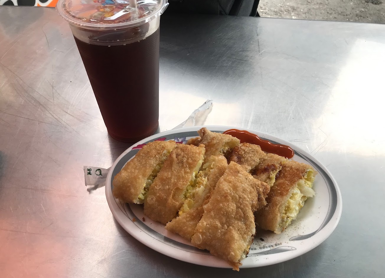 點餐速度快 出餐速度快 櫃檯看似年輕的男子 卻有著早餐店阿姨的老練 脆皮蛋餅有夠脆 酥脆到像是油炸的口感 但吃起來完全沒有油耗味