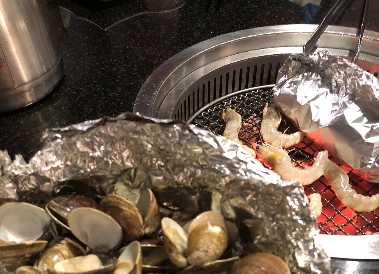 食材方面,牛肉豬肉還不錯,醃製的肉類調味也還可以,熟食牛丼飯好吃但牛肉偏乾一點,一些沙拉也不錯,附上的雞湯好喝,點了蛤仔後工作人員會幫你用鋁箔紙加桌上的雞湯把蛤仔包起來下去烤、湯汁混著雞湯超鮮甜,來的時候一定要點。