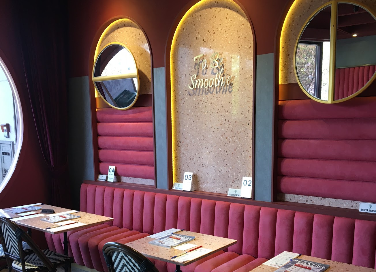 走進去,這是我迄今為止見過的最漂亮的“冰沙”地方。紅色的靠墊和優雅的裝飾。