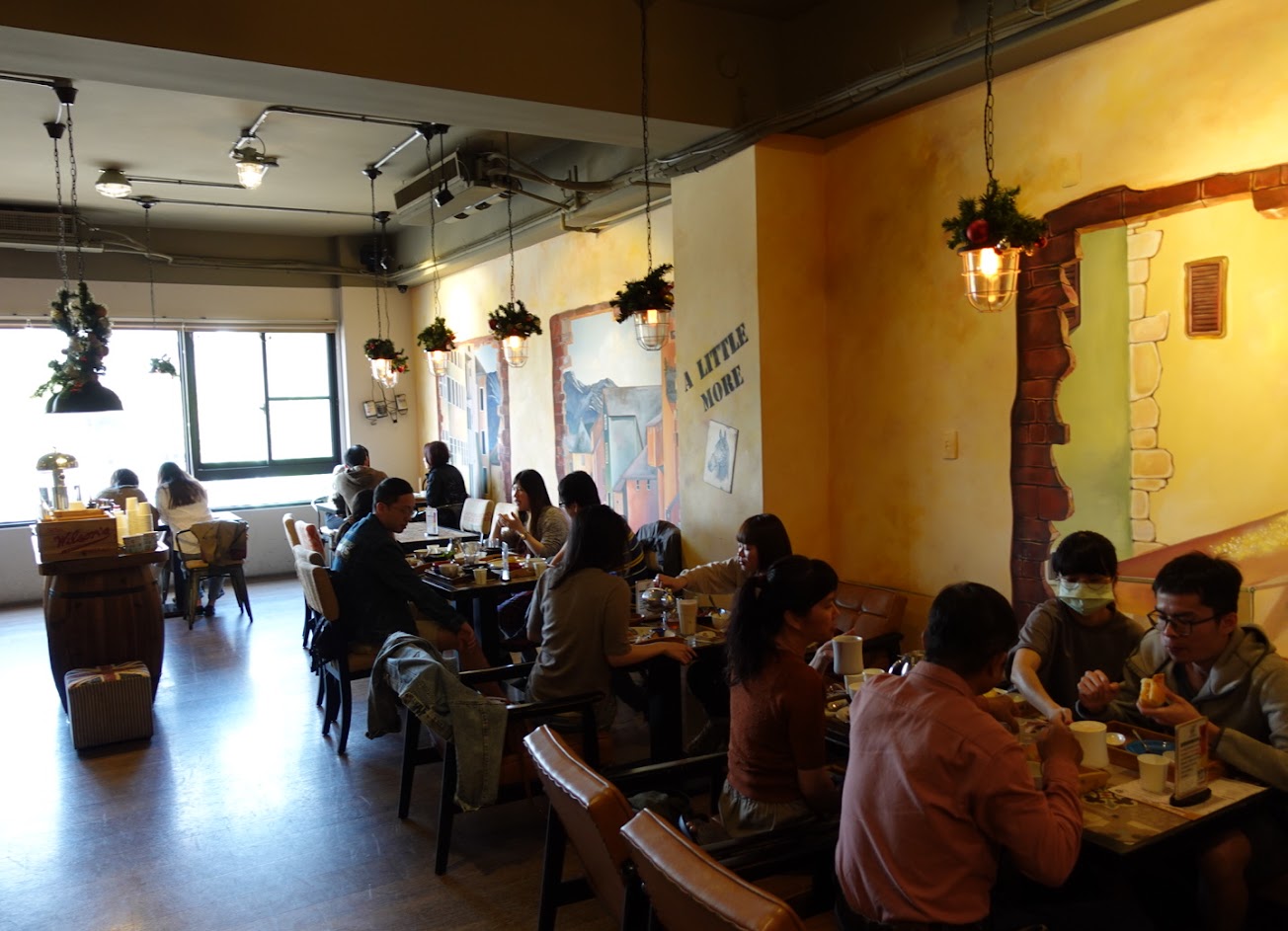 店內環境吵雜,而且平日中午也有限用餐時間。雖然不收服務費但餐點本來就偏貴,吐司加奶油還不錯吃,蛋捲普通。比較適合一群朋友去吵鬧吃早午餐,想要悠閒吃飯的人還是比較推薦隔壁的好夥伴
