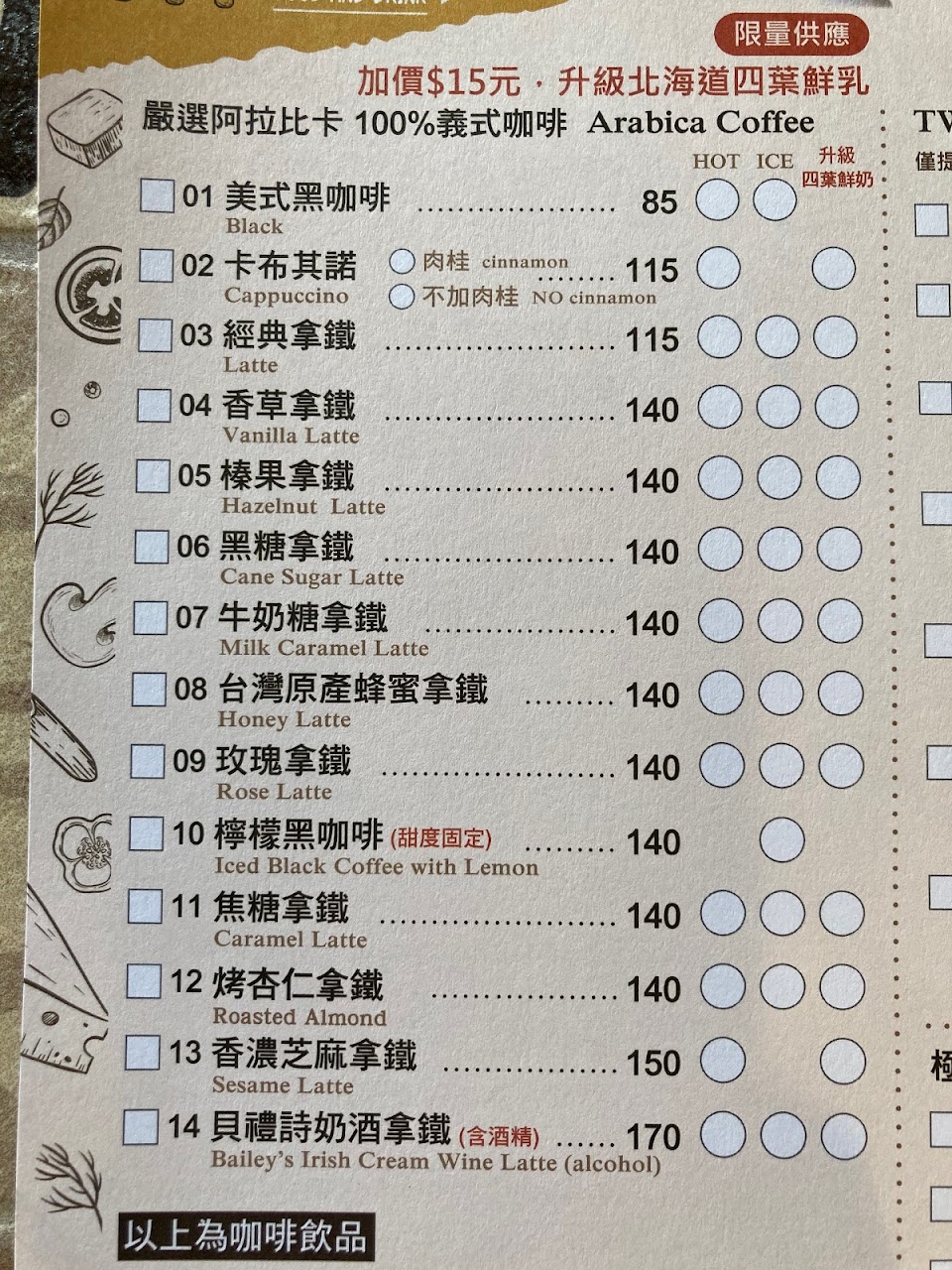 二樓一如既往的燈光昏暗,菜單的字為了看起來文青還小到長輩還要用手機開手電筒才看得清楚。