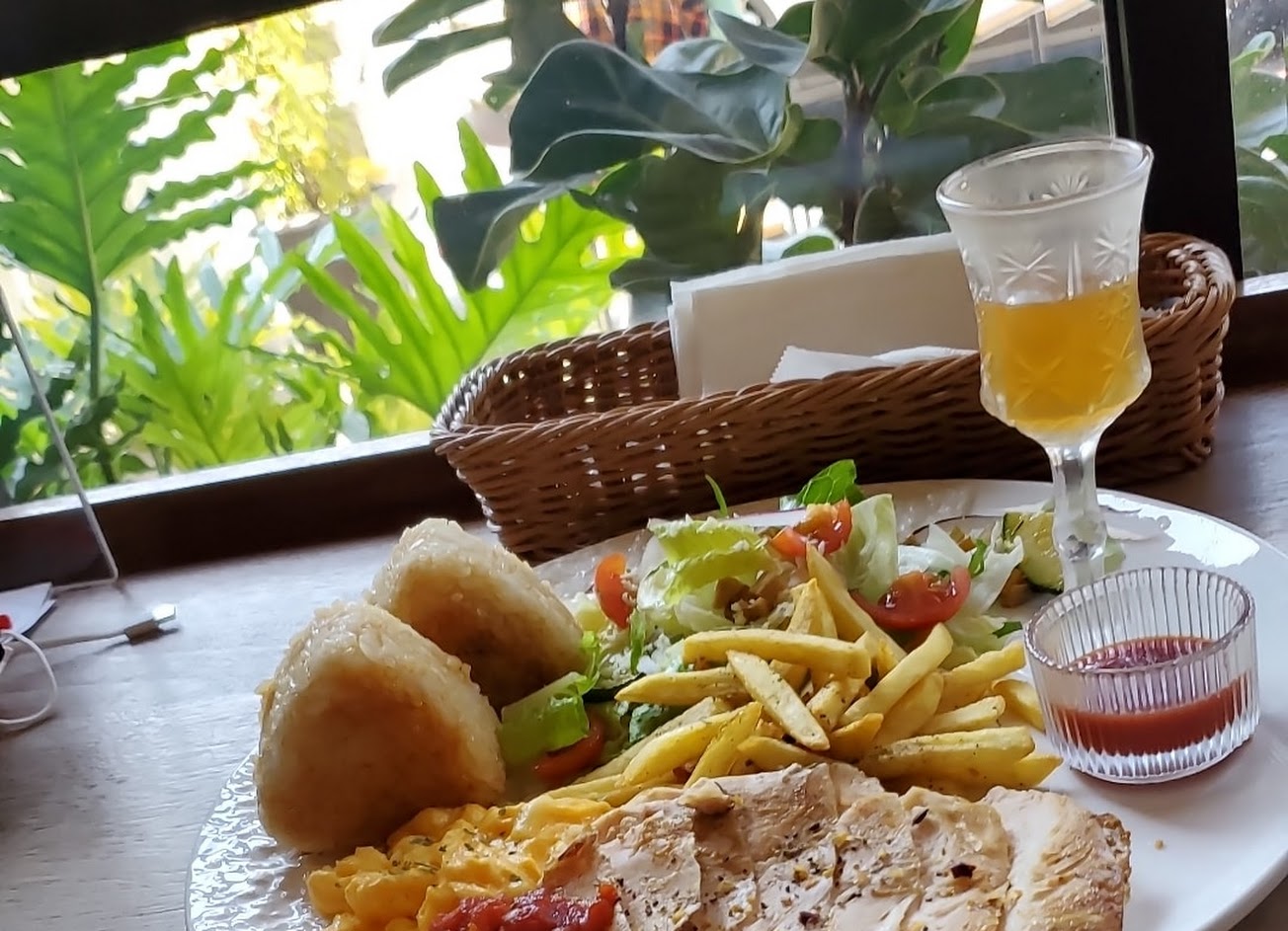丼飯的部分,米飯還行,炸物的部分就有點油,然後稍油!雞腿皮有脆但肉似乎沒有入味。早午餐的焦糖鮭魚歐姆蛋不錯,蛋有濕潤且起司味蠻濃的,是推薦!但飯食就一般,加點套餐的阿薩姆紅茶茶香有但喝起來沒什麼味道⋯⋯總之整體上就一般!不會特地想來,個人口感分享