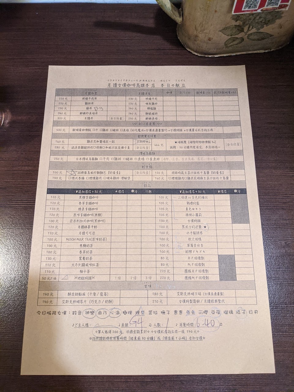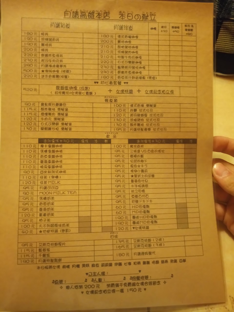 2024最新在地推薦餐廳的菜單_月讀女僕咖啡的菜單、圖片