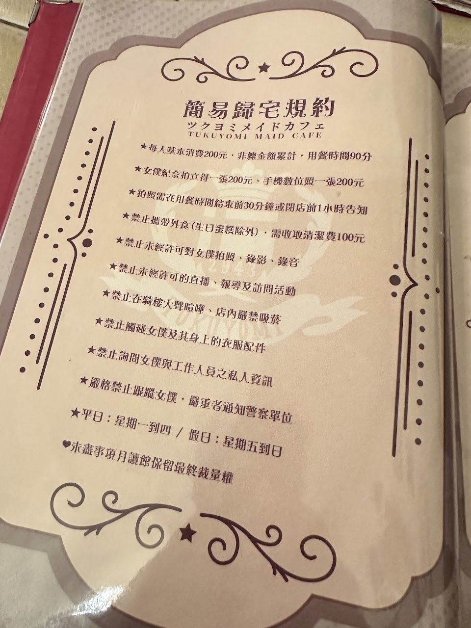 用餐時間限90分鐘有點短,女僕們都很專業親切,建議吃點心看女僕聊天,如果是吃正餐,可能沒空聊天,吃完剛好時間到走人