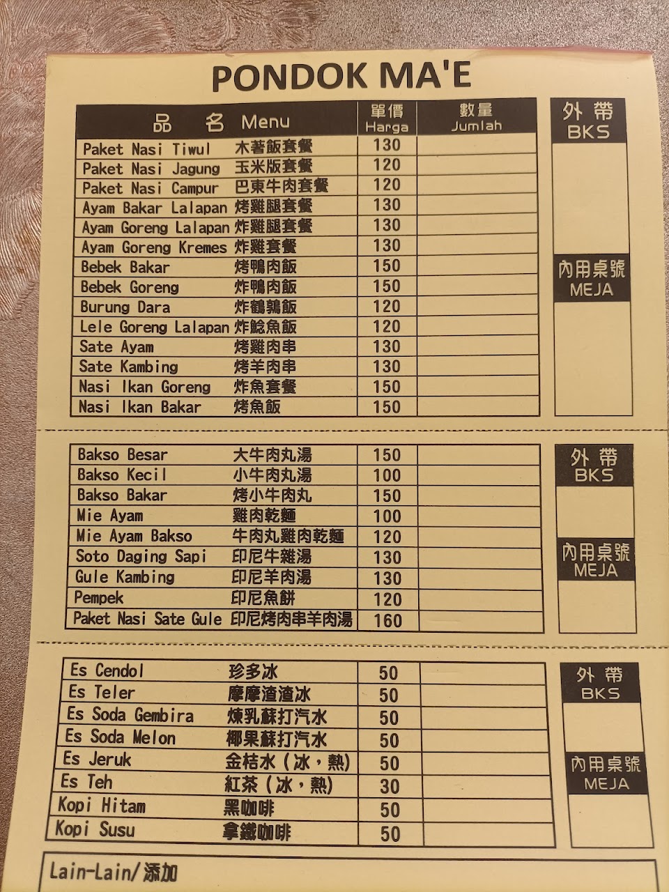 2024最新在地推薦餐廳的菜單_Pondok Ma’e的菜單、圖片