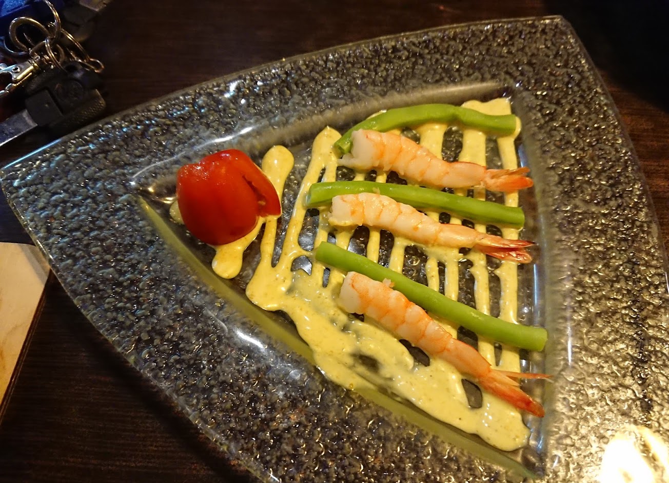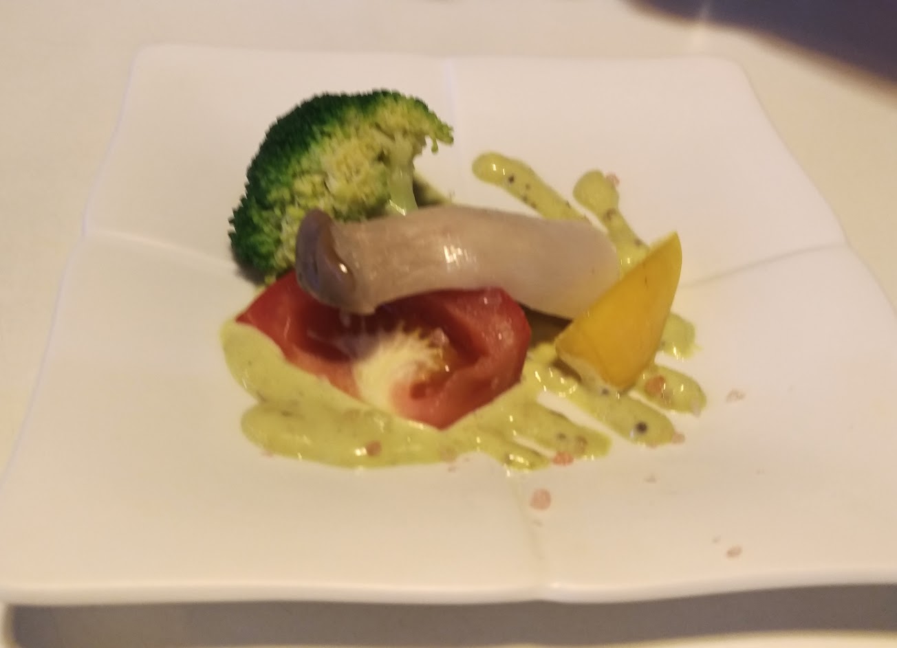 套餐前菜有杏鮑菇或蘆筍蝦,湯則沒有固定樣式,個人喝過濃湯(裡面有玉米紅蘿蔔馬鈴薯,不會過濃,喝起來沒有負擔)跟番茄湯(紅蘿蔔芹菜洋蔥,偏酸)。