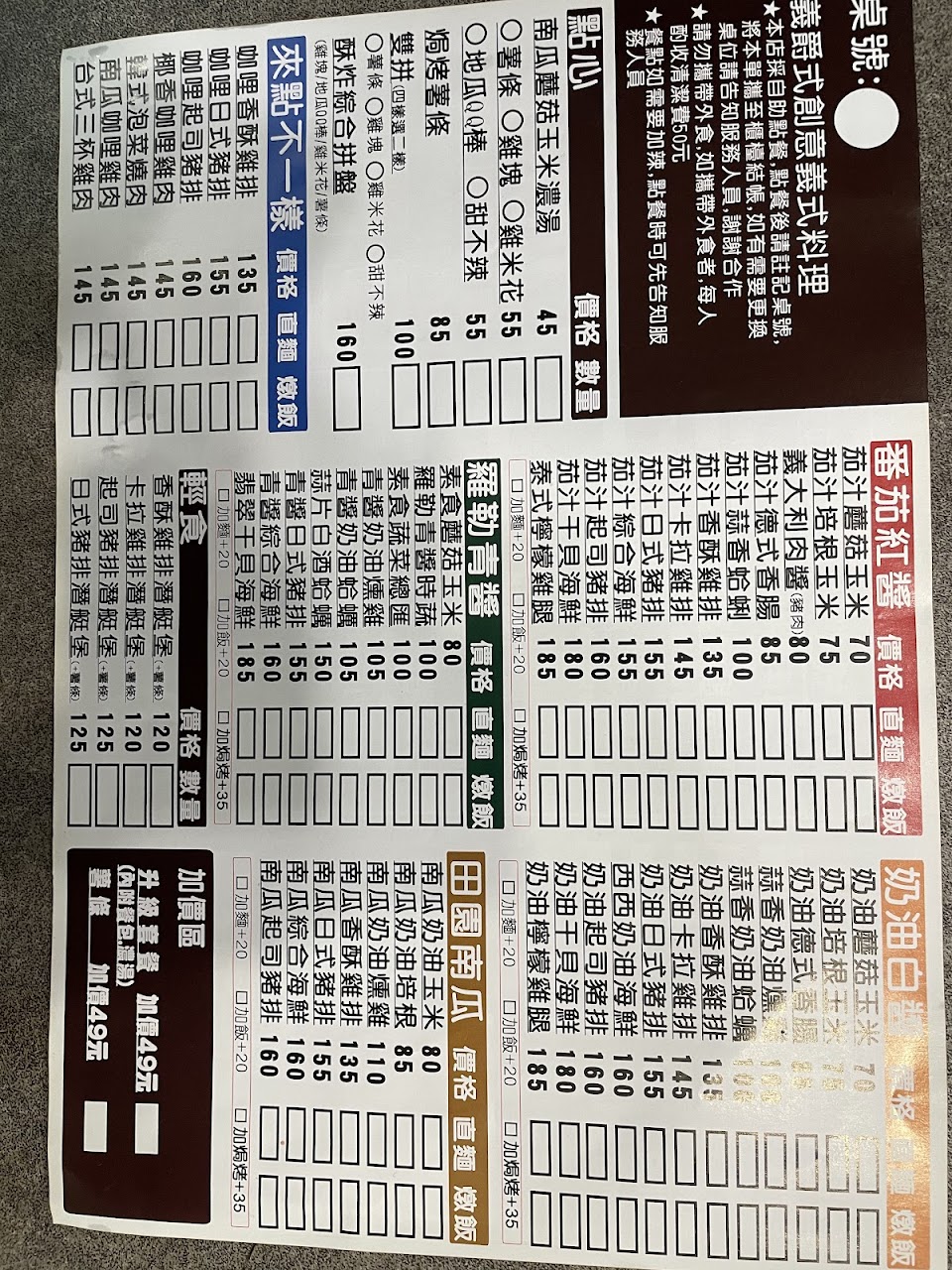 南瓜濃湯偏甜,但好喝,麵包超好吃,義大利麵有加麵,所以份量很夠,內用有免費的紅茶奶茶,最重要的是老闆娘人超好又漂亮,在店內聊到超過打烊時間,老闆娘也沒有來趕人,拖到老闆娘的下班時間真的很抱歉~