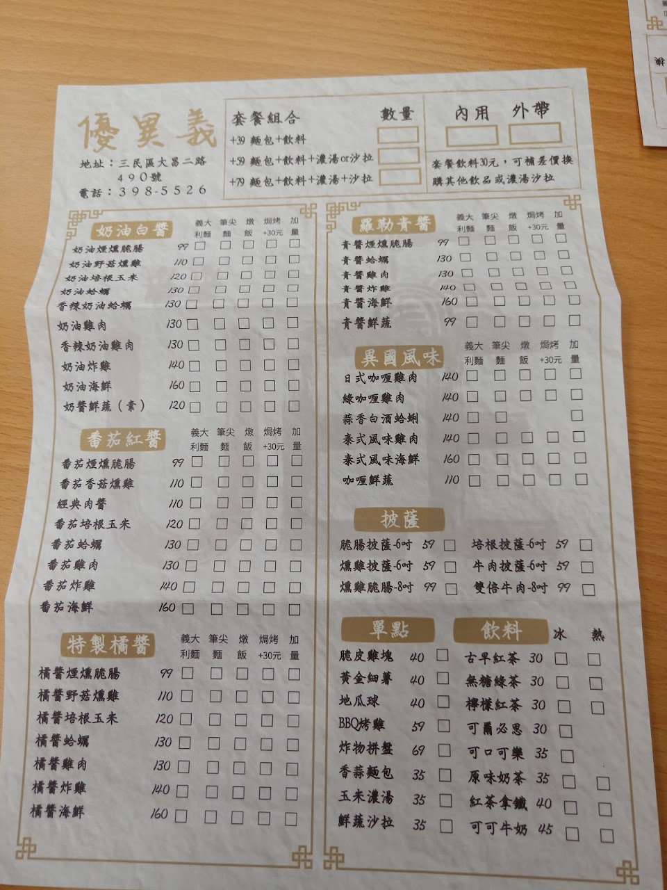 2024最新在地推薦餐廳的菜單_優異義三民大昌店的菜單、圖片