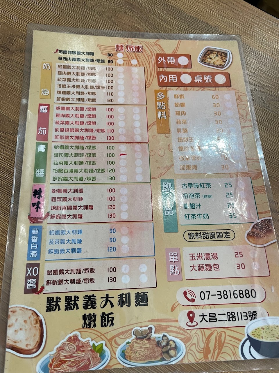 2024最新在地推薦餐廳的菜單_默默義大利麵·燉飯的菜單、圖片